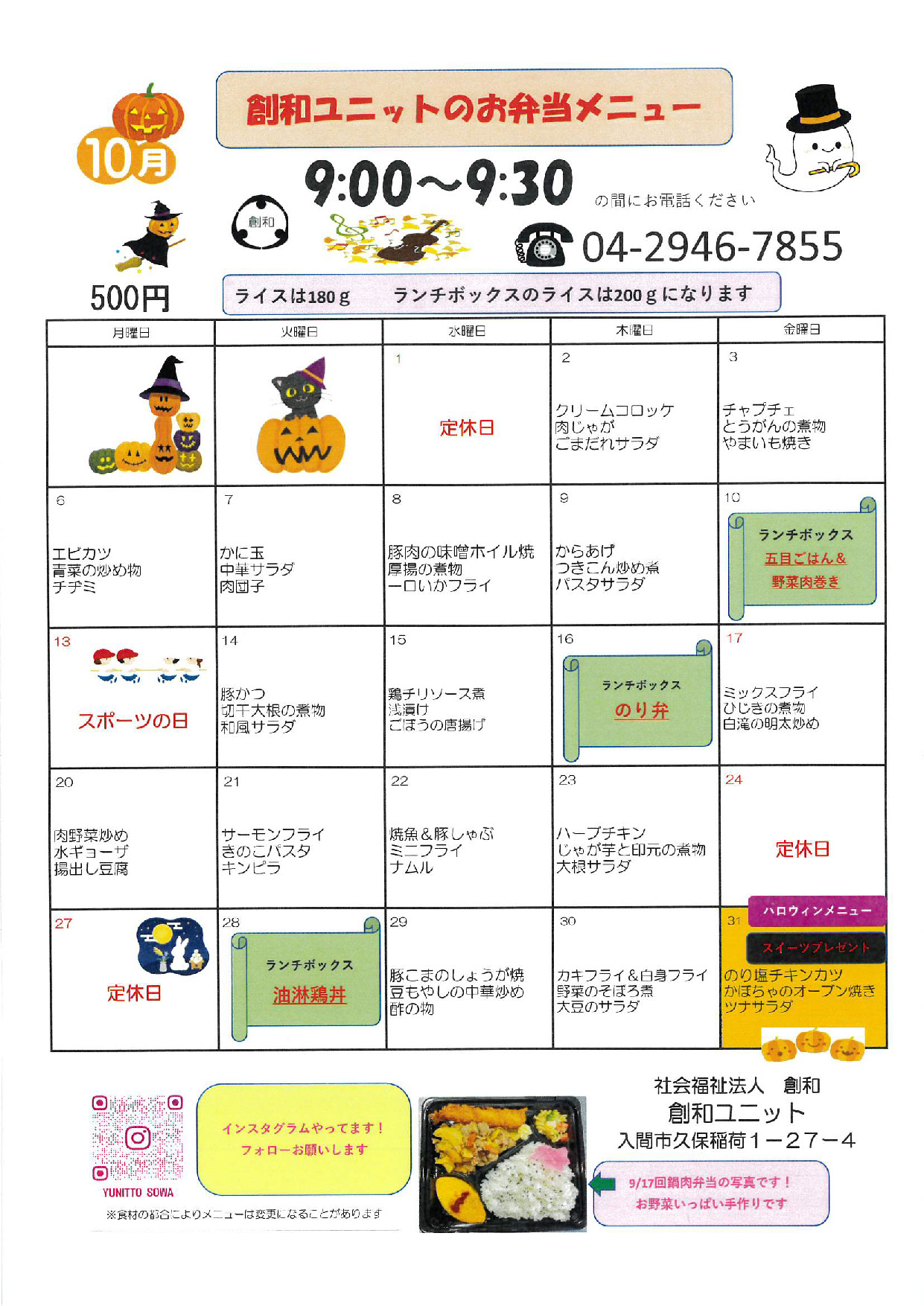 ユニット弁当 ライスの量変更のお知らせいつもご利用ありがとうございます。4月1日より価格高騰に対応するため誠に勝手ながら、ユニット弁当の価格を500円に変更させていただきます。なにとぞご理解いただき、今後とも変わらぬご愛顧をお願い申し上げます。 | |